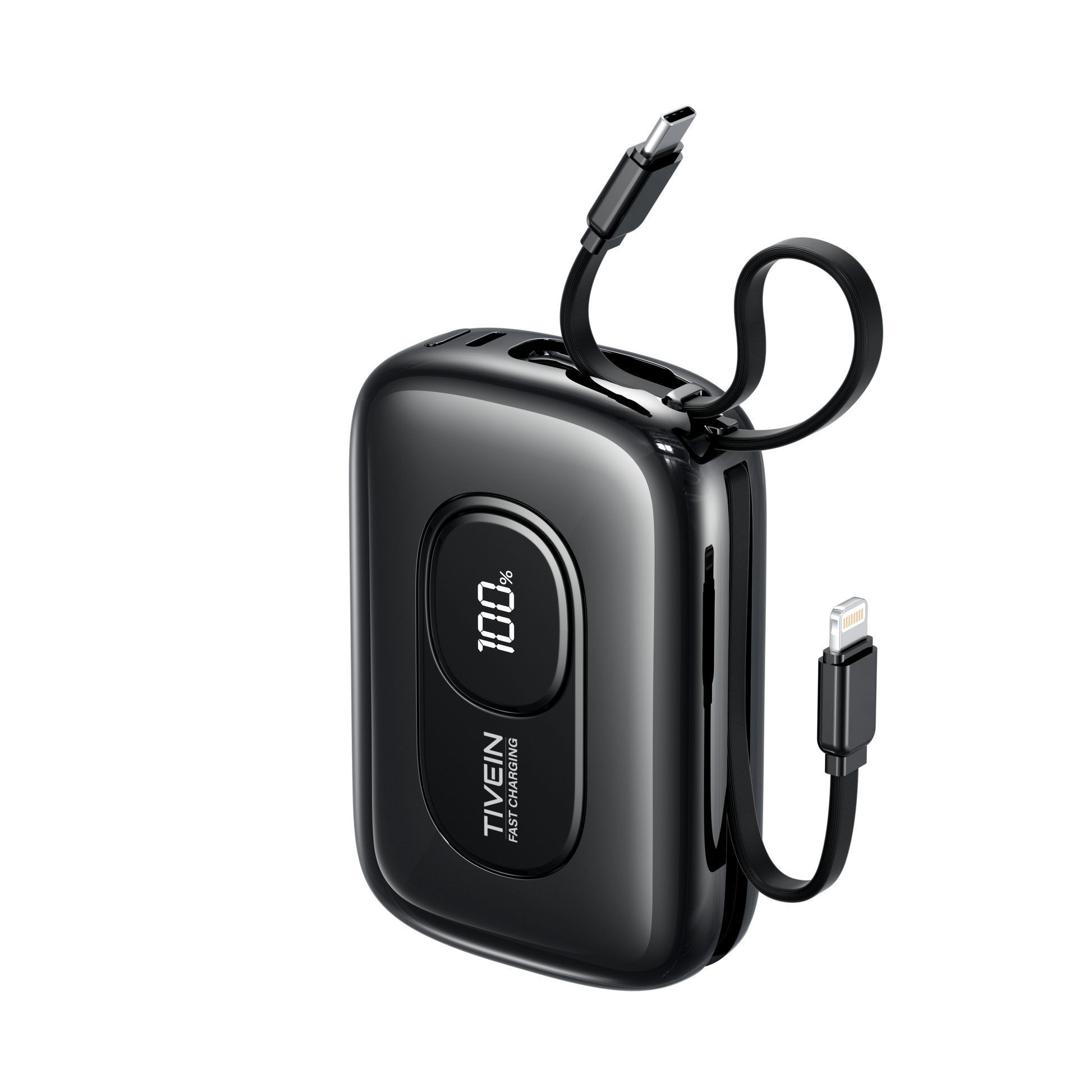 20000mAh Mini Power Bank (USB-C + USB-C/Lightning) with Built-in USB-C and Lightning Cables 22.5W