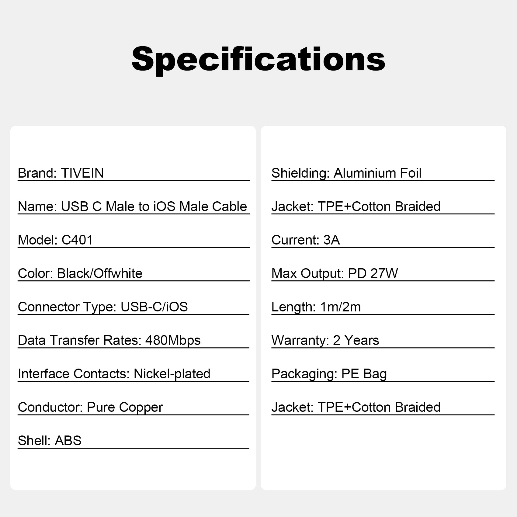 USB C Male to Lightning Male Cable C401