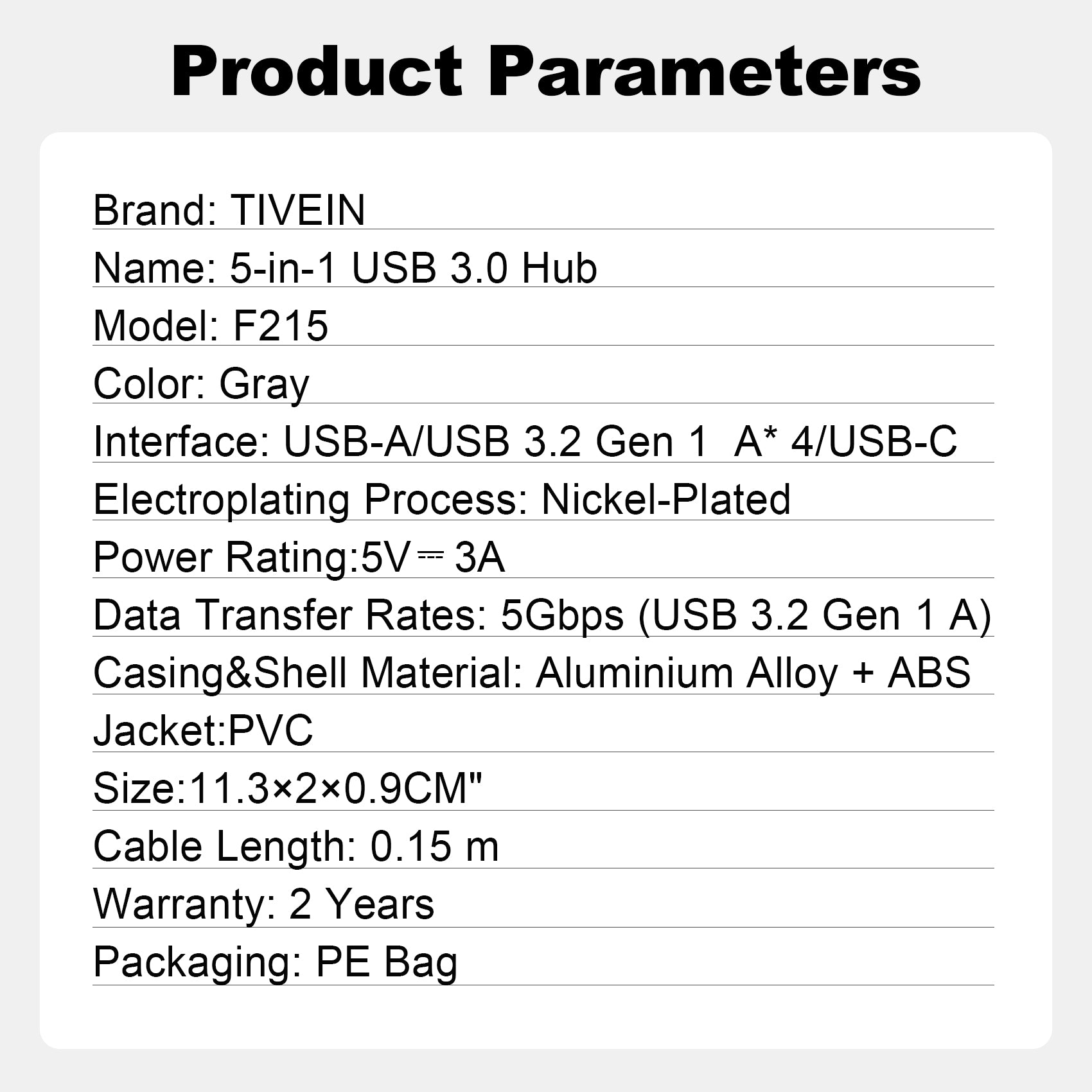 Data Transfer Rates: 5Gbps(USB 3.2 Gen 1 Type-A)